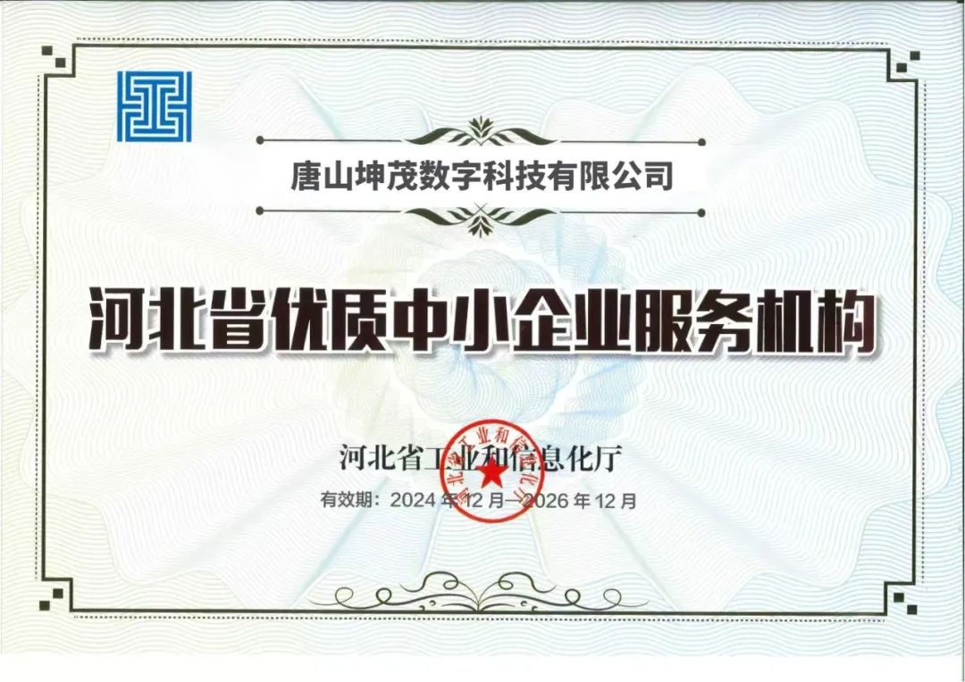 一路同行共同進(jìn)步KUN MAO唐山坤茂數(shù)字科技有限公司熱烈祝賀唐山坤茂數(shù)字科技有限公司,成功斬獲河北省優(yōu)質(zhì)中小企業(yè)服務(wù)機(jī)構(gòu)的殊榮,這無疑是對其卓越實(shí)力與貢獻(xiàn)的高度認(rèn)可。