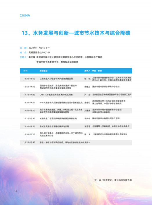 2024年11月20-22日2024(第十八屆)中國城鎮水務發展國際研討會與新技術設備博覽會